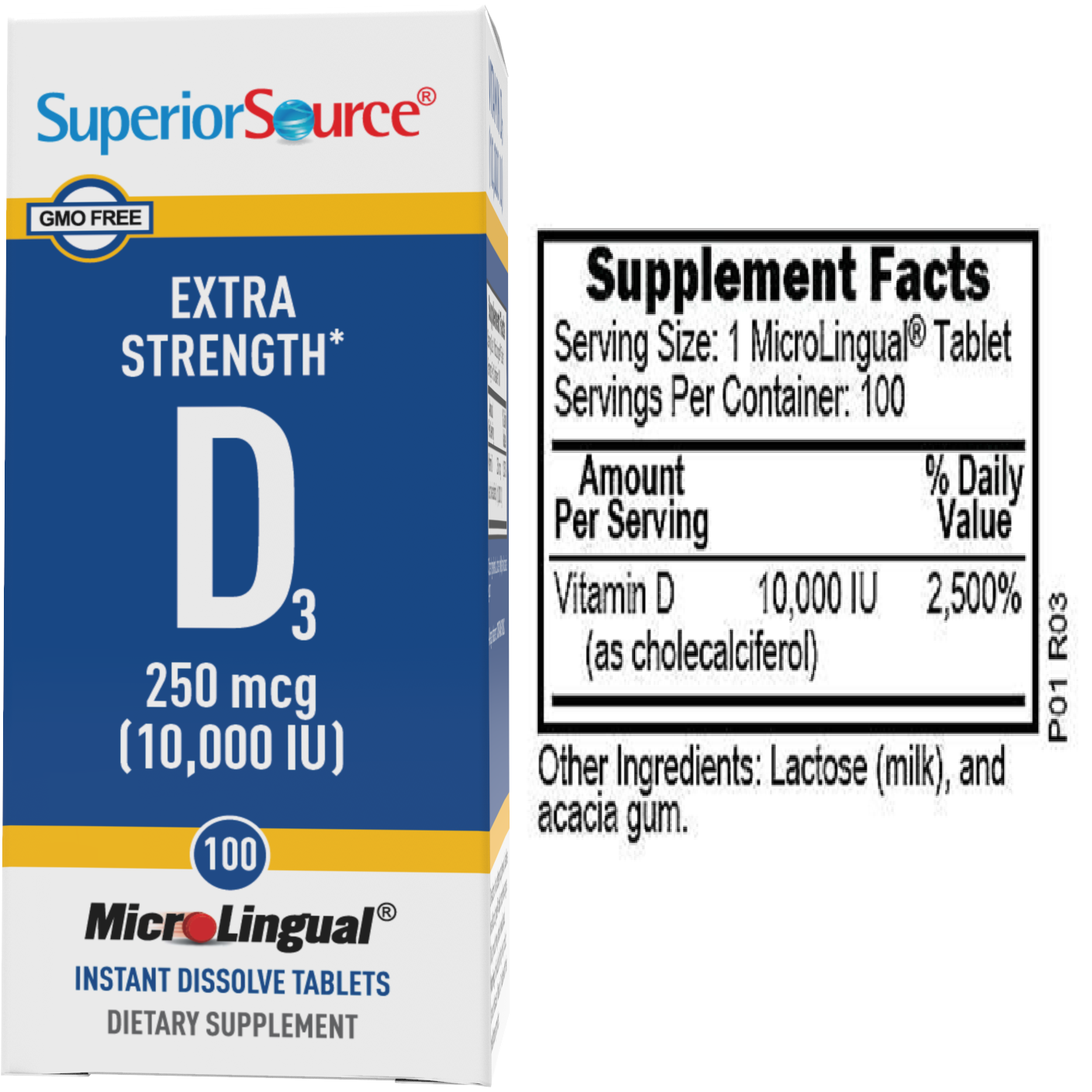 Vitamin D3 100 tabs, EXTRA STRENGTH 10,000 IU per tab